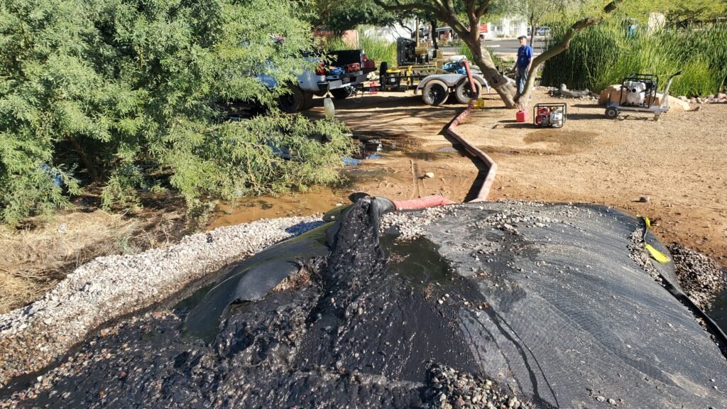 Gravel pumping is a specialized sediment removal process designed to handle dense materials such as gravel, sand, and compacted sediment. Using high-capacity pumping equipment, heavy materials are extracted from the lake or pond bottom and safely transported for disposal or reuse.